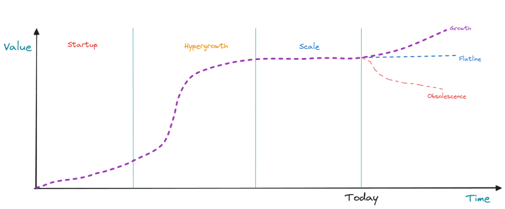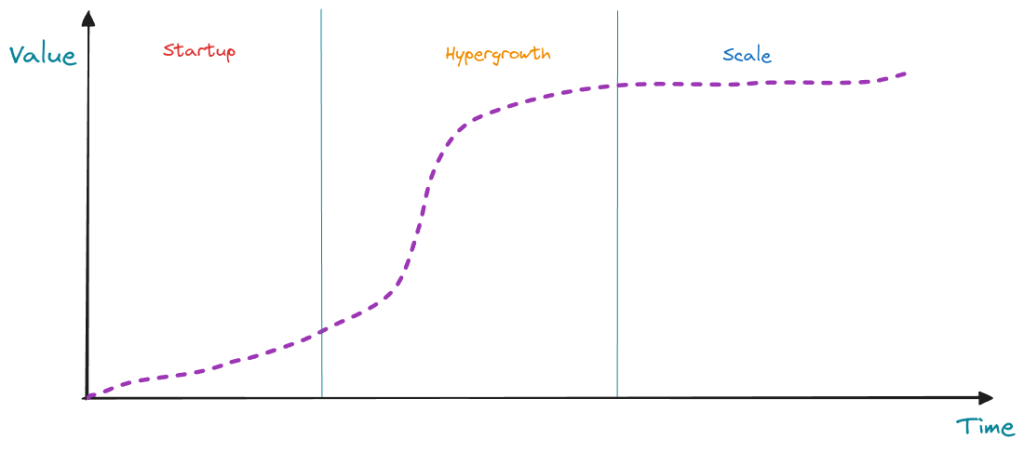 Every successful product goes through a journey of innovation, hypergrowth, and eventual maturity. Today’s mature products were once struggling startups striving to gain a foothold in the market. When these startups succeed in establishing a beachhead and achieving product-market fit, they typically experience rapid and substantial growth. With consistent performance over the years, they eventually reach maturity at a large scale.